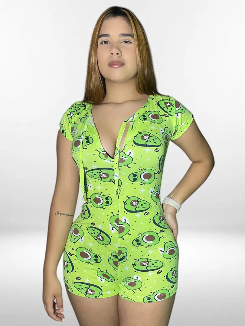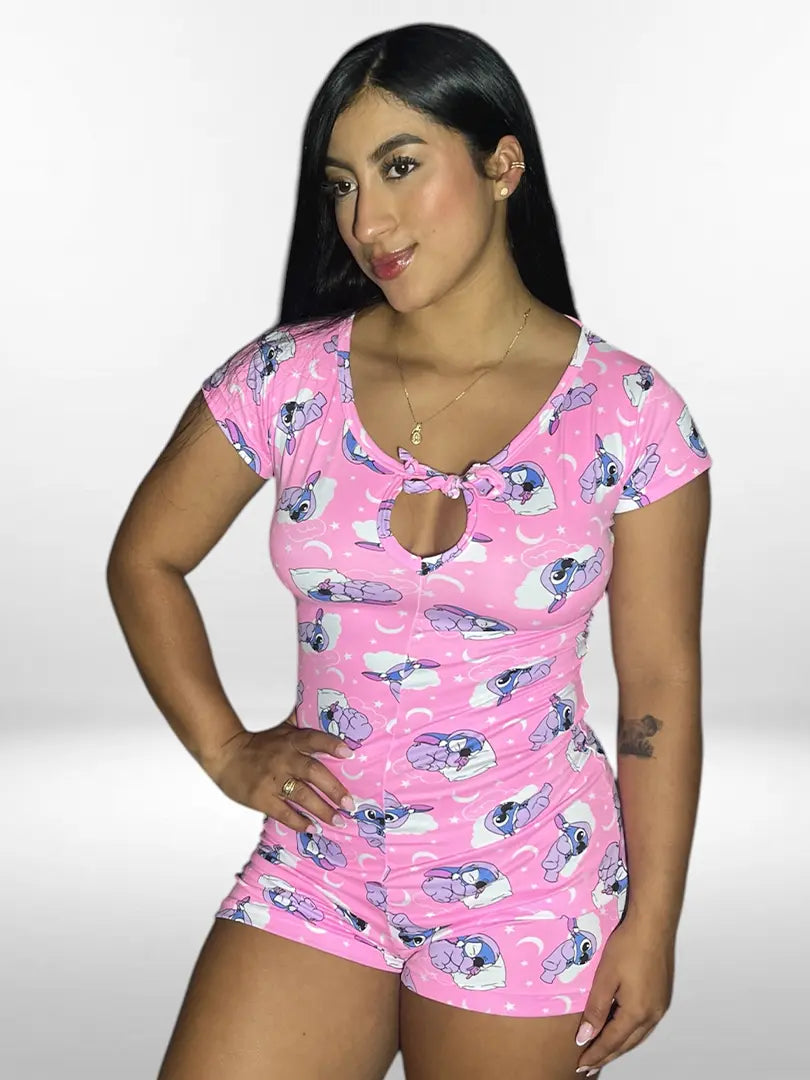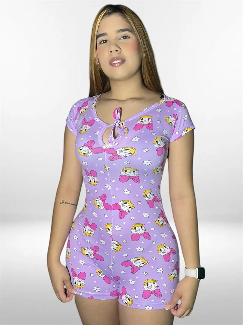 Enterizo elaborado en piel de durazno, con escote en la parte delantera para amarrar, suave y fresco para acompañar tus noches.