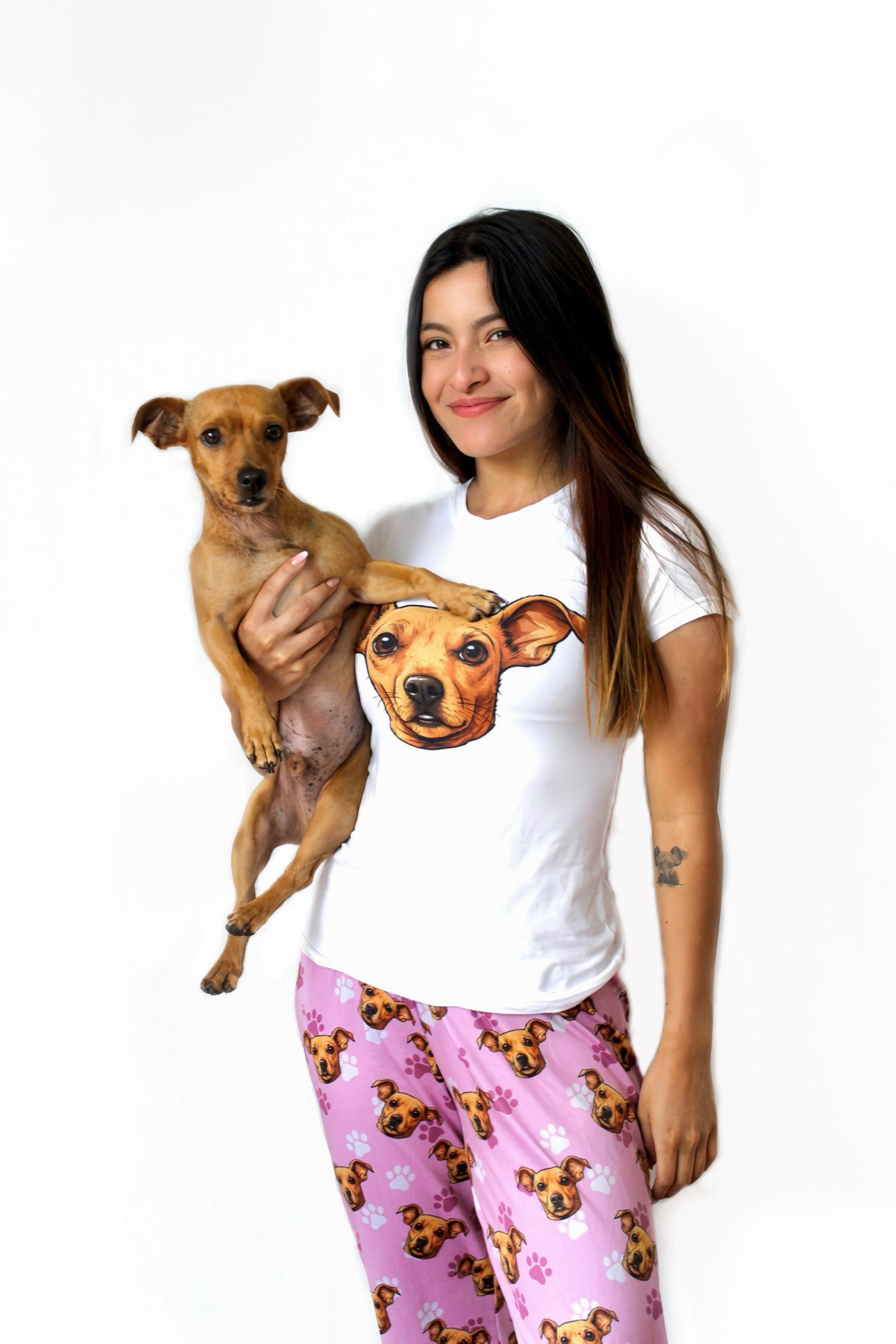 Camisa + Pantalón Personalizado con la foto de tu mascota favorita. Diseñado en tela piel de durazno suave y transpirable, garantiza comodidad durante toda la noche. Cada prenda se confecciona a eleccion tuya, no tienes que tener una buena foto de tu mascota poruqe nosotros nos encargamos de ilustrarla y conservar todas sus caracteristicas, creando un regalo único y memorable. Perfecto para amantes de mascotas que desean llevar a sus mejores amigos incluso mientras duermen. Disponible en diferentes tallas y acabados de calidad premium.